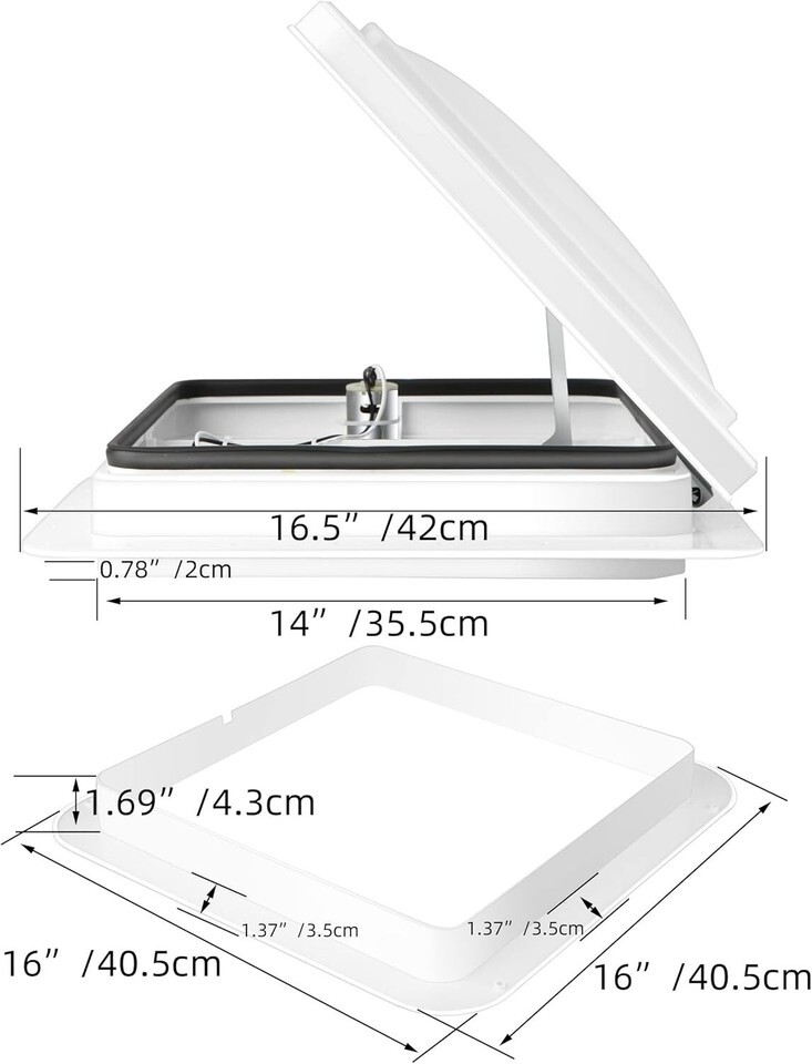 Replaces Ventline, Jensen and Elixir vents or Compatible with a 1-1/4" to 2-1/4" Thick Roof,Fits Standard 14" x 14" Openings.