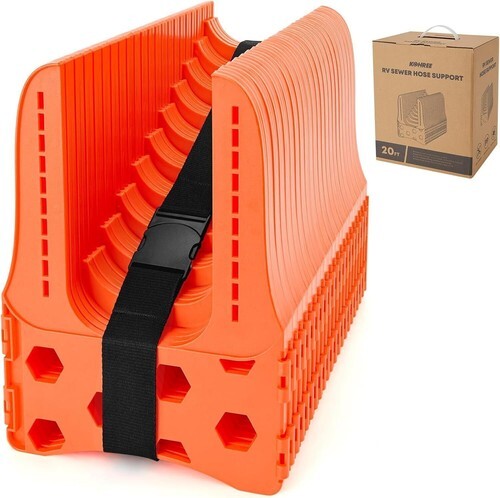 Sewer Hose Support Kit is an adaptable sewer hose support that elevates your sewer hose and guides the sewer hose to help move waste features independent troughs in 9 different heights,can be set-up to make turns to avoid an obstacle or go over a troughs measure 17? long and nest for easy storage when not in use.Provides support for up to 20 feet of sewer hose length for All Travel Trailers,Campers and Motorhomes.
