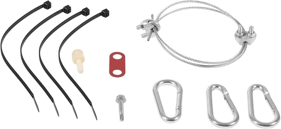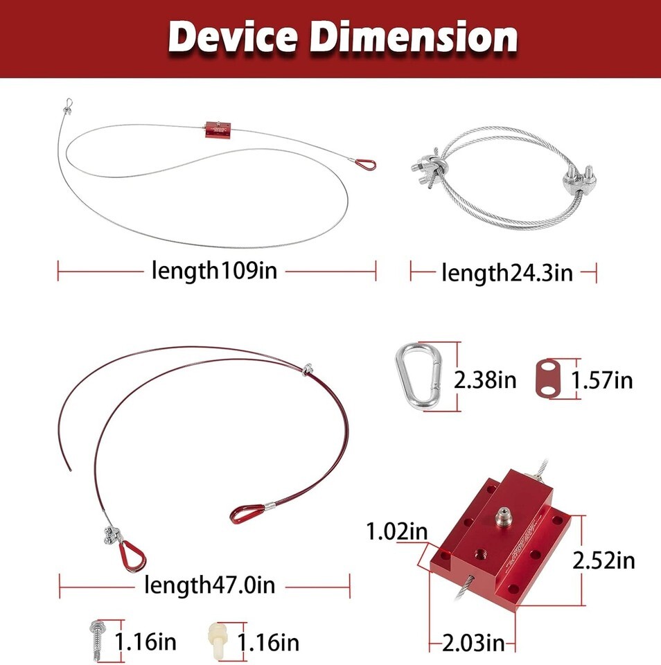 ?Package include?3 cables and hardware 109" cable with a red fixed mount, 1Pcs 47" woven steel wire cable, 1Pcs " cable with PVC coated, Snap hooks diameter: ".