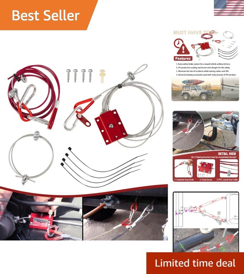 RV Trailer Towing Breakaway Cables System Emergency Break Away Control Device, for Universal Tow Bar Flat-Towed Supplemental Brake Cables System