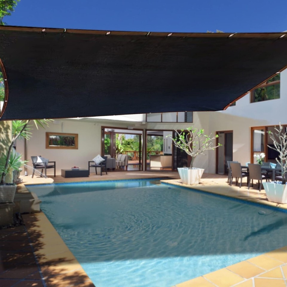 90% Shade Rate: Our Shade Cloth can resist rays and most sunlight while air can still flow through so as to create a comfortable cool and shaded place for people or blocks 90% of the sunshine and bring 10% the shadow, 10% of the sunshine can through it.