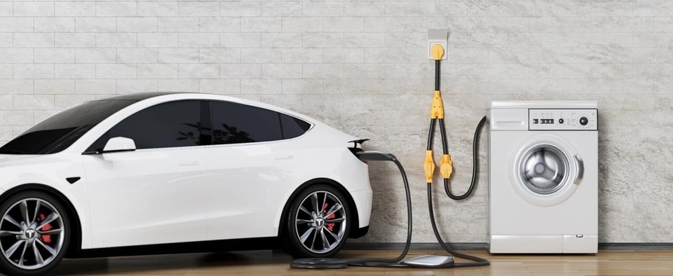 Splitter Cord for EV RV Charging: - This splitter 14-30P to 14-50R and 14-30R adapter allows you to connect your RV/EV while remain a 14-30R dryer outlet, enables you to use 220V 30amp dryer outlet to charge EV or RV without unplugging dryer