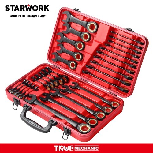 FLEXIBLE ROTATION: The 180 flex head design can switch between clockwise and counterclockwise directions, making it easier to apply force. And 180 rotating flexible head can easily bypass obstacles at any desired angle. wrench set most suitable for remote and narrow corners.