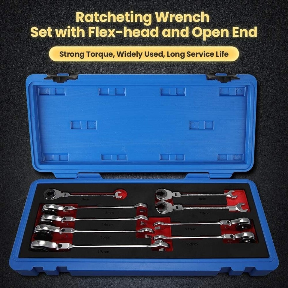 Metric Tubing Combination Wrench Set 9pcs8-17mm, Ratcheting Wrench Set with 180Open Flex-head, Tubing Ratchet Wrench Set with 72 Gears Cr-V Steel Constructed