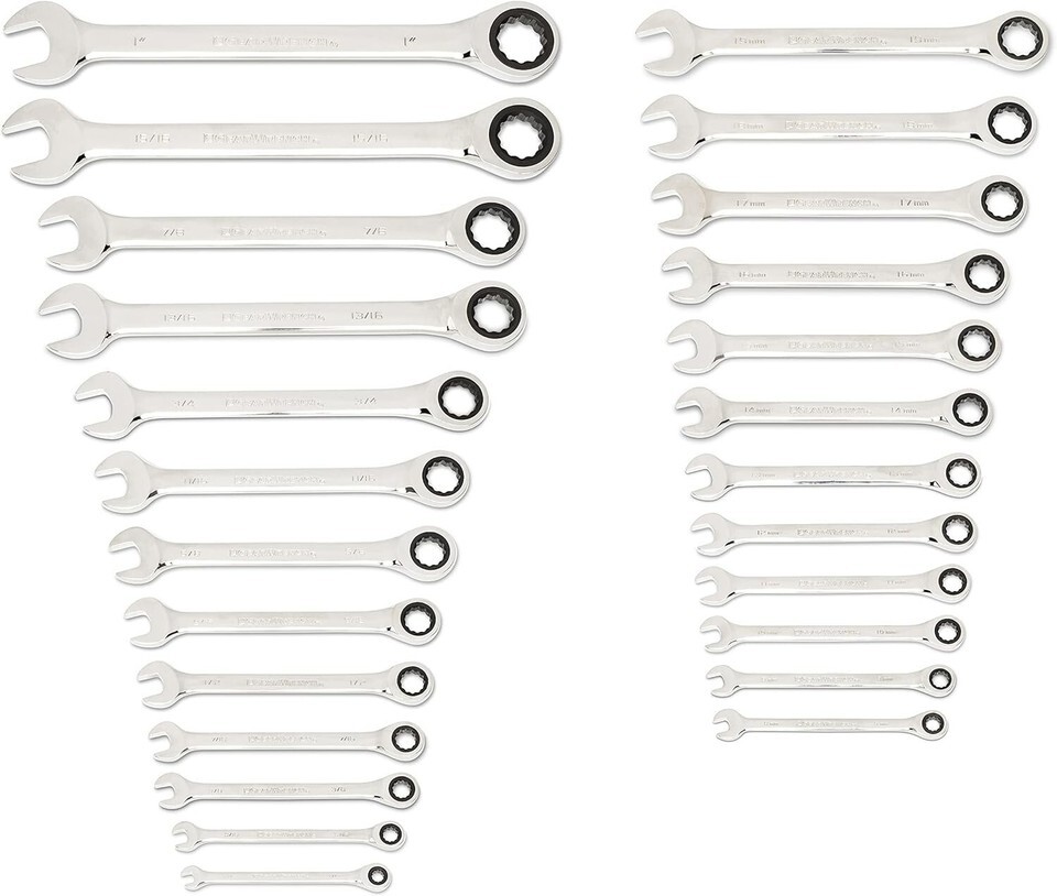 25 Pc. Combination Ratcheting Wrench Set, SAE/MM -