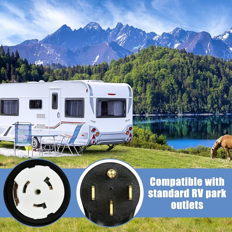 [NEMA 14-50P] - NEMA 14-50P, 50 Amp, 125/250 Volt, 4-Prong Male Plug for common 50A power outlets in RV parking lots or home.