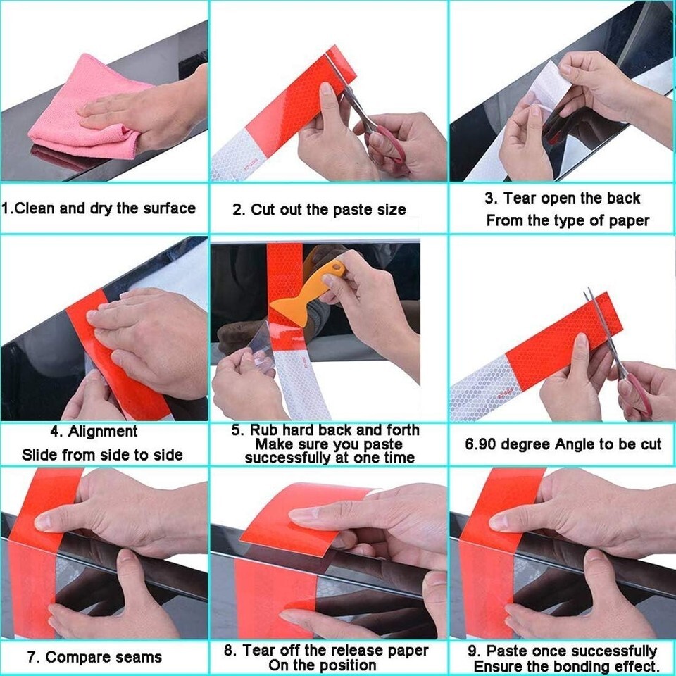 [Wide Usage:] DOT-C2 Approved, Alternating Red White Pattern. The dot reflective tape it can be widely used in trailers, commercial vehicles, automobiles, ships, agricultnral equipment, campers, RV's, motorcycle, cars, tricycles, trucks, helmet, raincoat, boats, Fence, Mailboxes, or even Hiker's Backpack, Clothing etc.