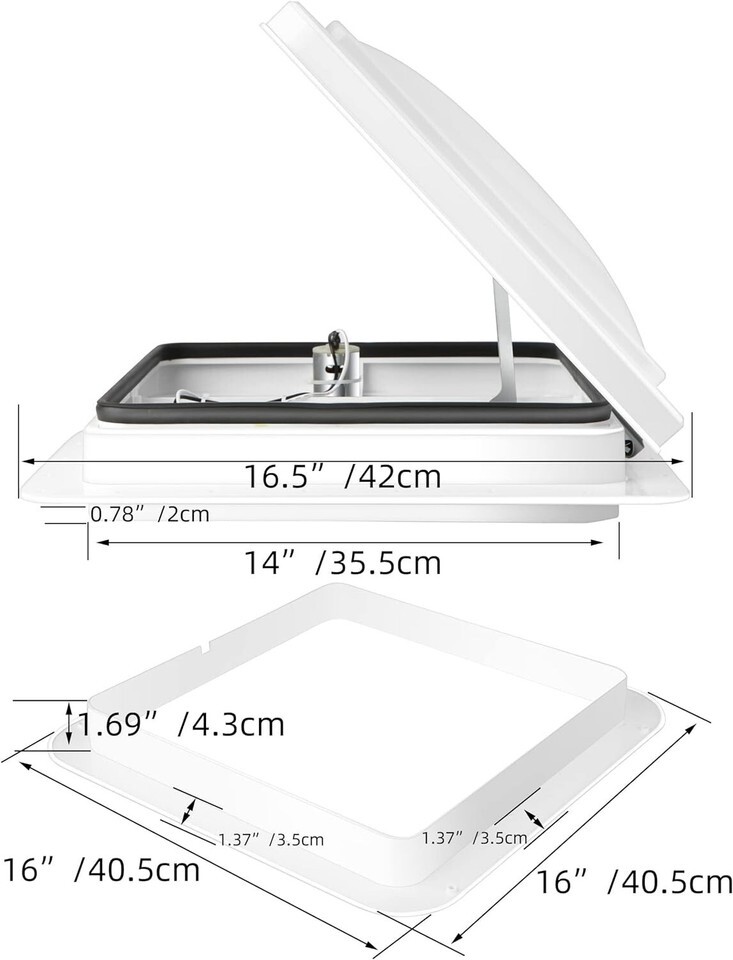 Upgrade your RV ventilation system with our Reversible Airflow Roof Vent with 12V Fan. This efficient solution will keep your space fresh and comfortable, while the leak-resistant design ensures durability and weather tightness. With easy installation and compatibility with various roof thicknesses, this roof vent is a must-have for any RV owner.