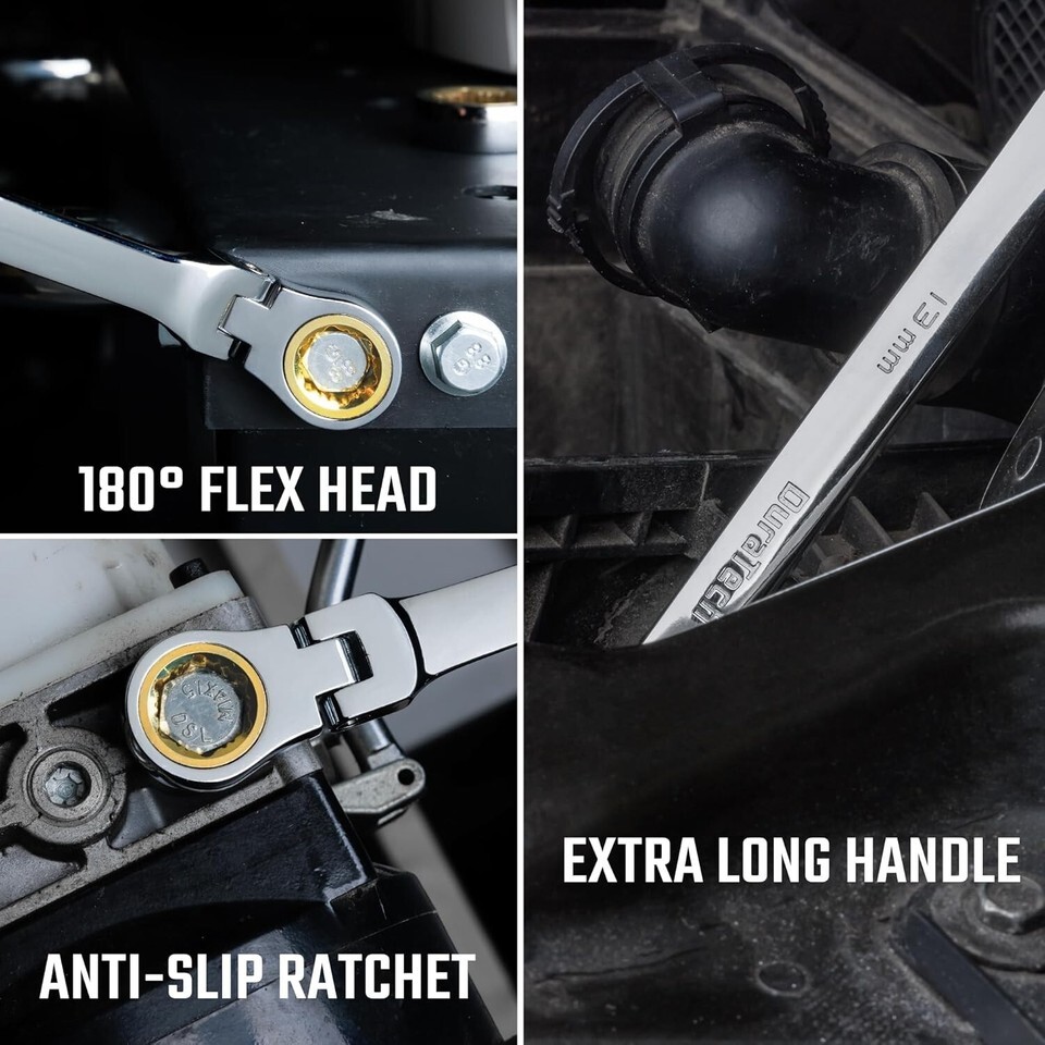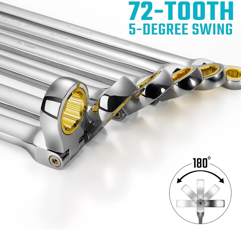 Extra Long Anti-Slip Flex-Head Ratcheting Wrench Set, Double Box End Wrench S...