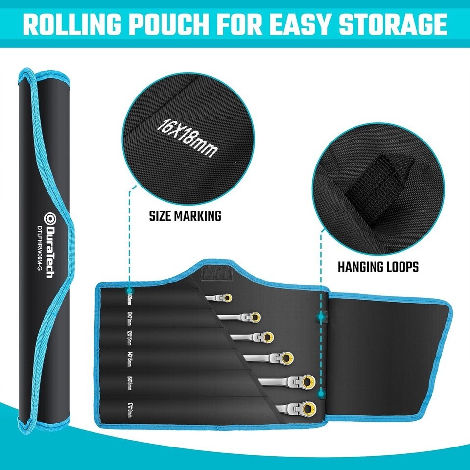 The wrench set comes with a premium roll-up pouch for easy organization and convenient storage, and the tailored cover keeps wrenches from sliding out. They roll up neatly in an organizer bag for storage in your car trunk or mechanics gear