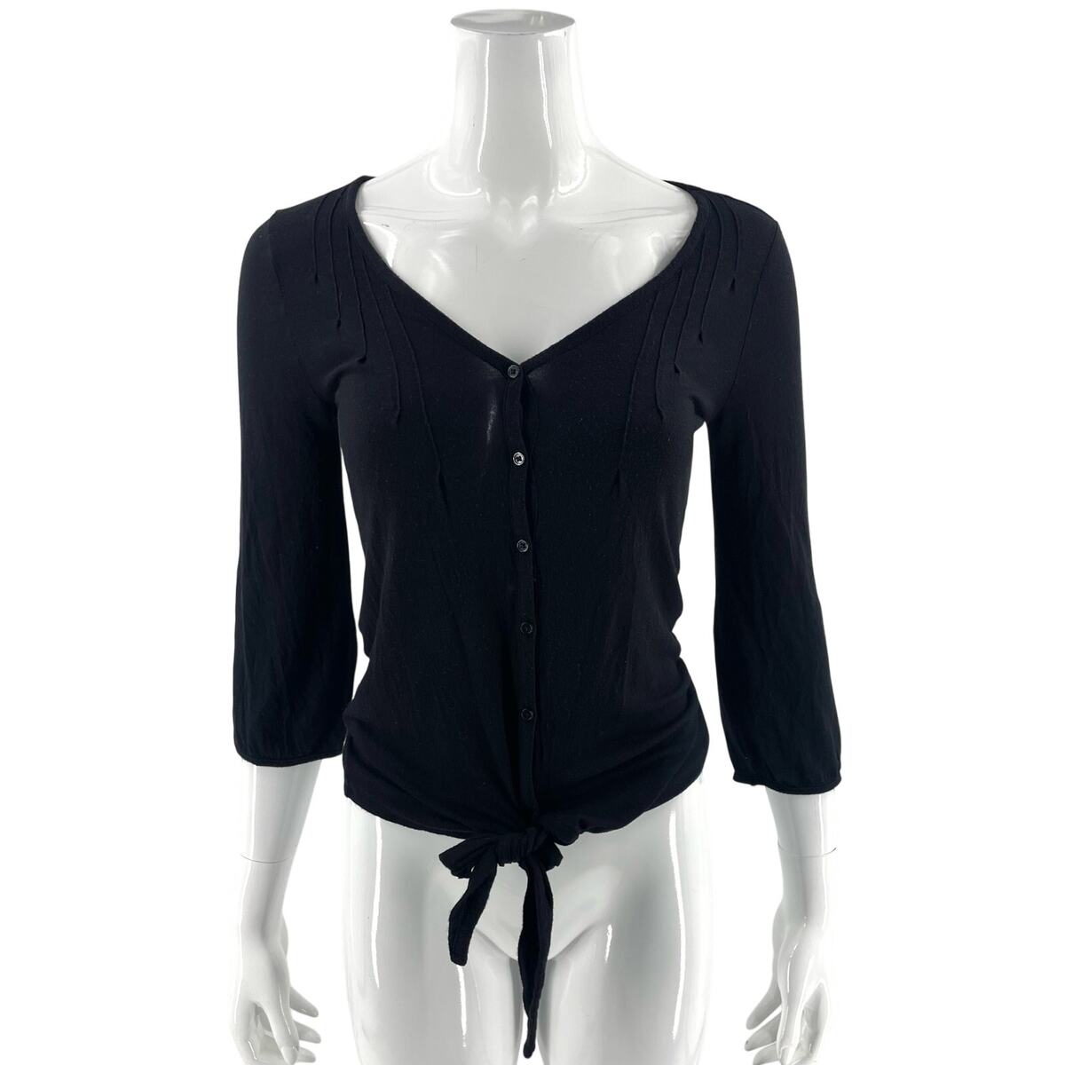 Old Navy Womens Top Size XS Black Button Up Tie Front V Neck Solid Shirt