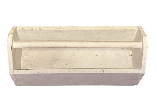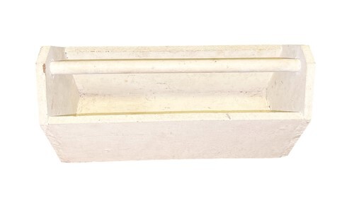 Vintage solid wood tote / caddy in a white painted finish with center carry handle.
