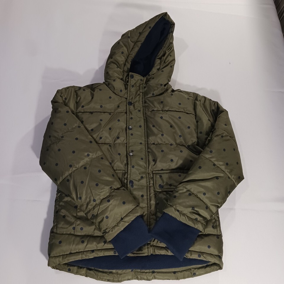 Thereabouts RN#93677 Youth Green & Black Dots Hoodie Puffer Jacket Size Small 8