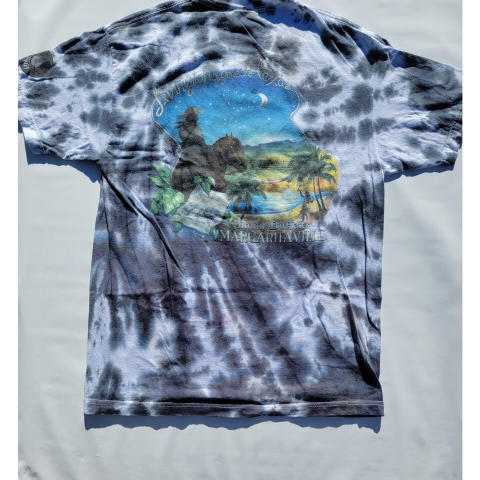 Jimmy Buffett Margaritaville Livingston TX T-Shirt Mens L Gray & Black Tie Dye