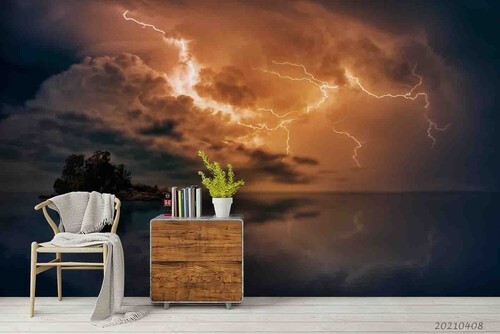 Amazing digital wallpaper of a ship in a storm of fire and lightning (2560x1600)