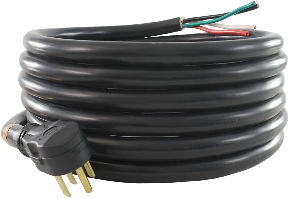 14302 RV/Generator Power Cord 30-Foot 50 Amp Male Plug to Bare Wire, Black
