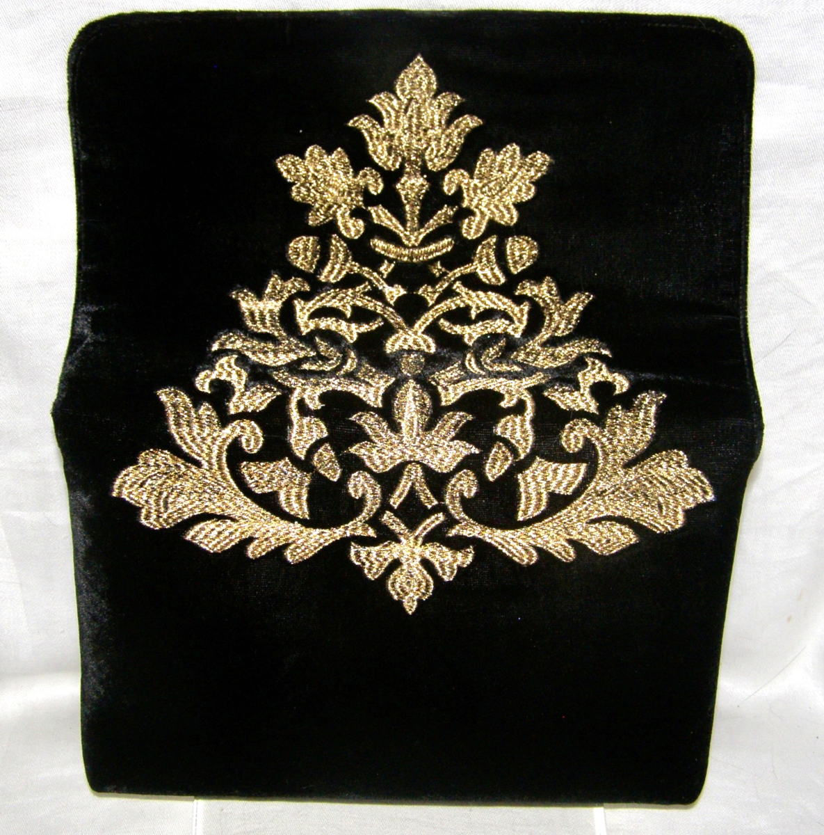 BLACK VELVET, GOLD METALLIC THREAD EMBROIDERED |
