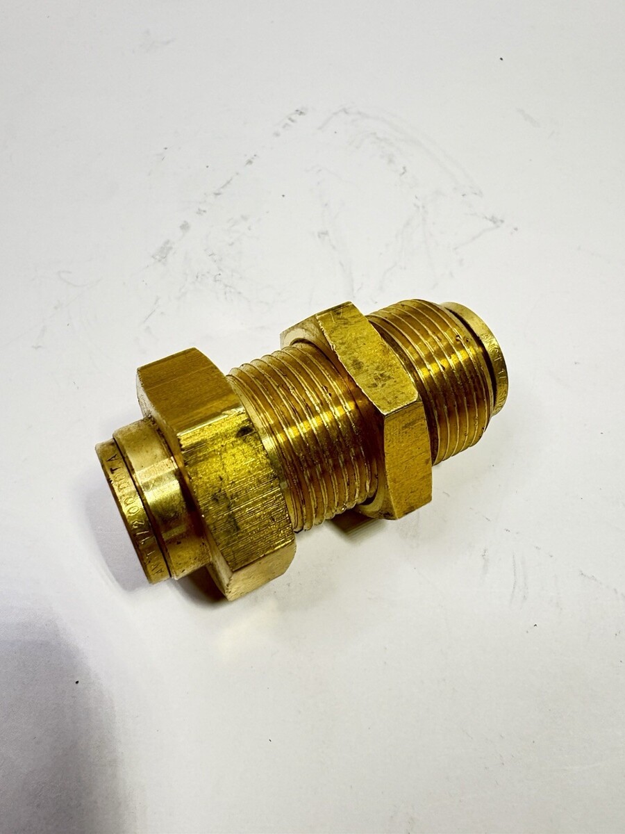 1- brass bulkhead, for 1? hole, with 1/2? OD push lock X 1/2? OD push lock