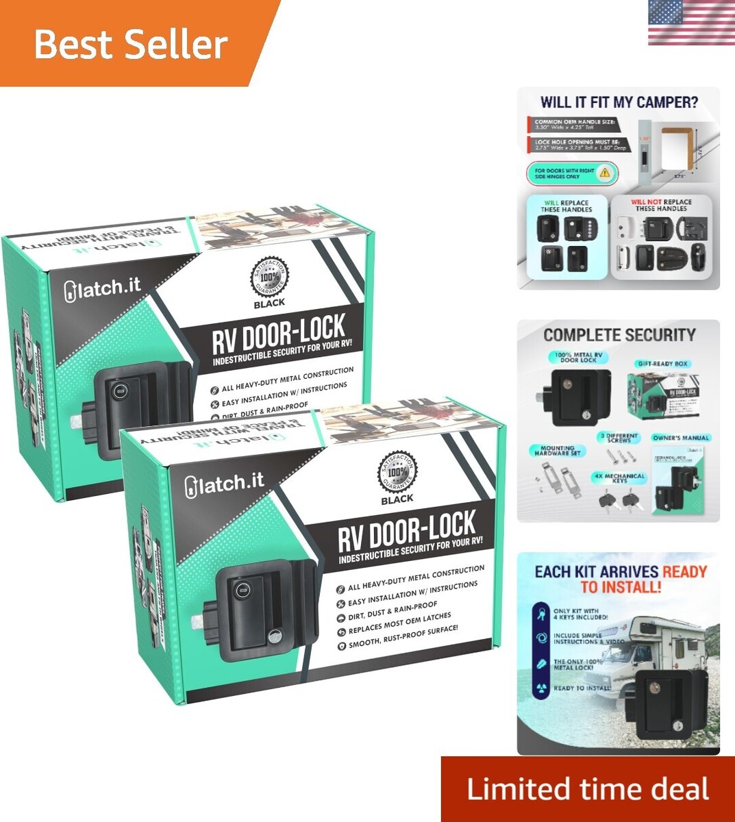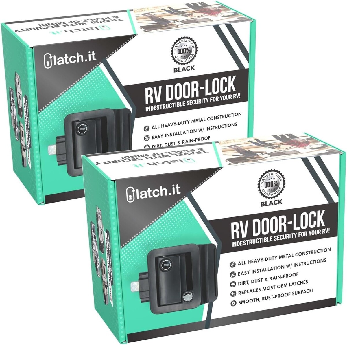Black RV Door Latch | 2 Keyed Alike RV Door Locks for Travel Trailers | Trave...