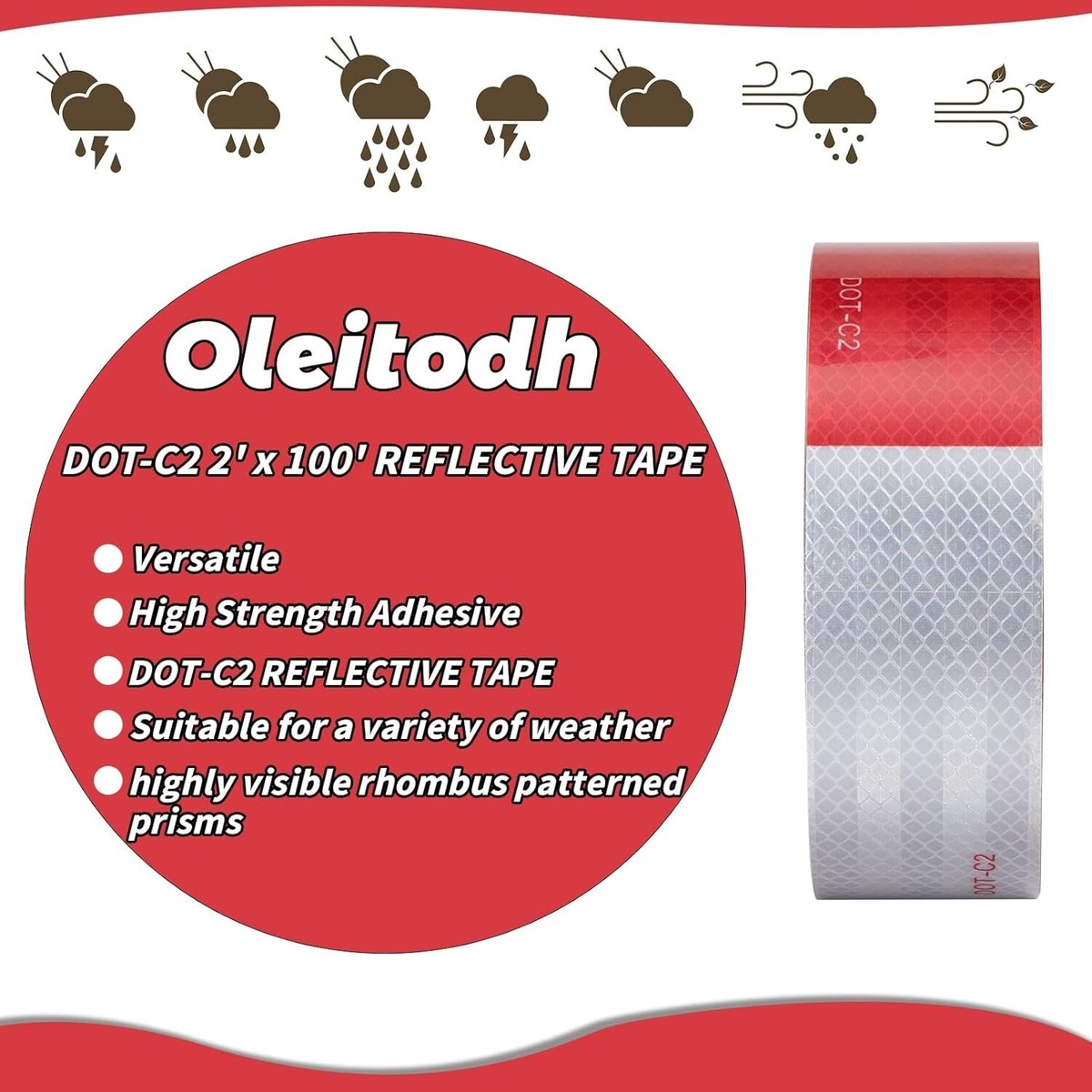 DOT Standards Reflector Tape: DOT-C2 approved, you won't have to worry about safety and regulations. Because our dot reflective tape is already approved by the dot and exceeds standards. waterproof reflective tape works great for vehicles, cars, boats, road marking, tractors. can be cut into smaller size for helmet, stroller, bicycle, motorcycle and mailbox. conspicuity trailer tape can withstand extreme weather, resists dirt, grease, aging and doesn?t destroy the object elements