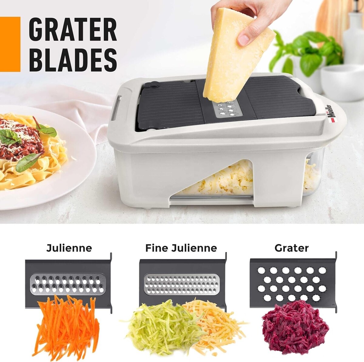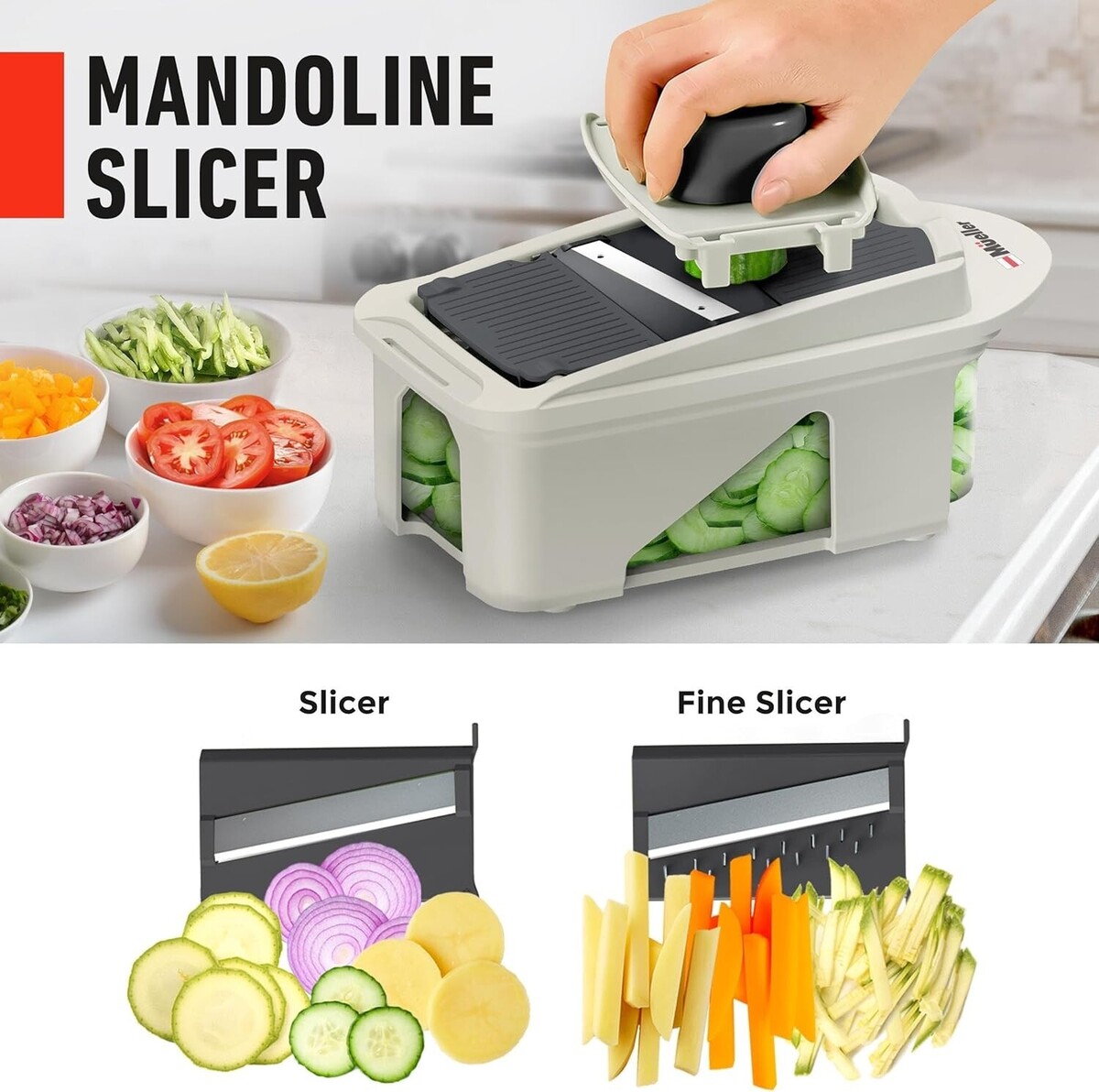 Pro-Series All-in-One, 12 Blade Mandoline Slicer for Kitchen, Food Chopper, Vegetable Slicer and Spiralizer, Cutter, Dicer, Grater, Kitchen Gadgets Sets with Container, White Sand/Dark Grey