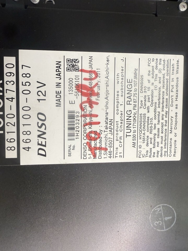 REFURBISHED 2010-2011 TOYOTA PRIUS GPS NAVIGATION CD RADIO R86120-47390 E7022