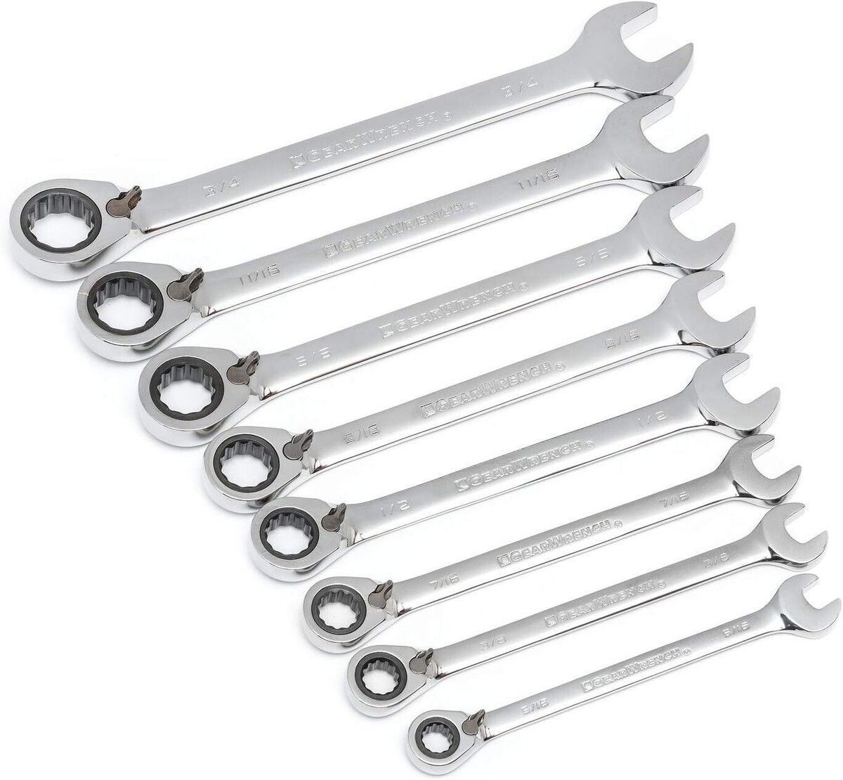 8 Piece 72-Tooth 12 Point Reversible Ratcheting Combination SAE Wrench Set |
