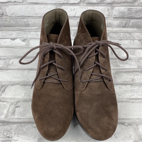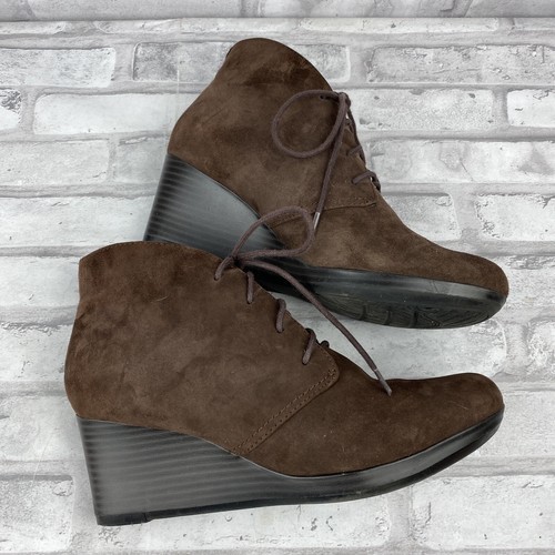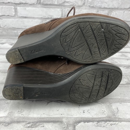 Clarks Brown Suede Lace Up Crystal Peridot Wedge Ankle Boot Size 7M