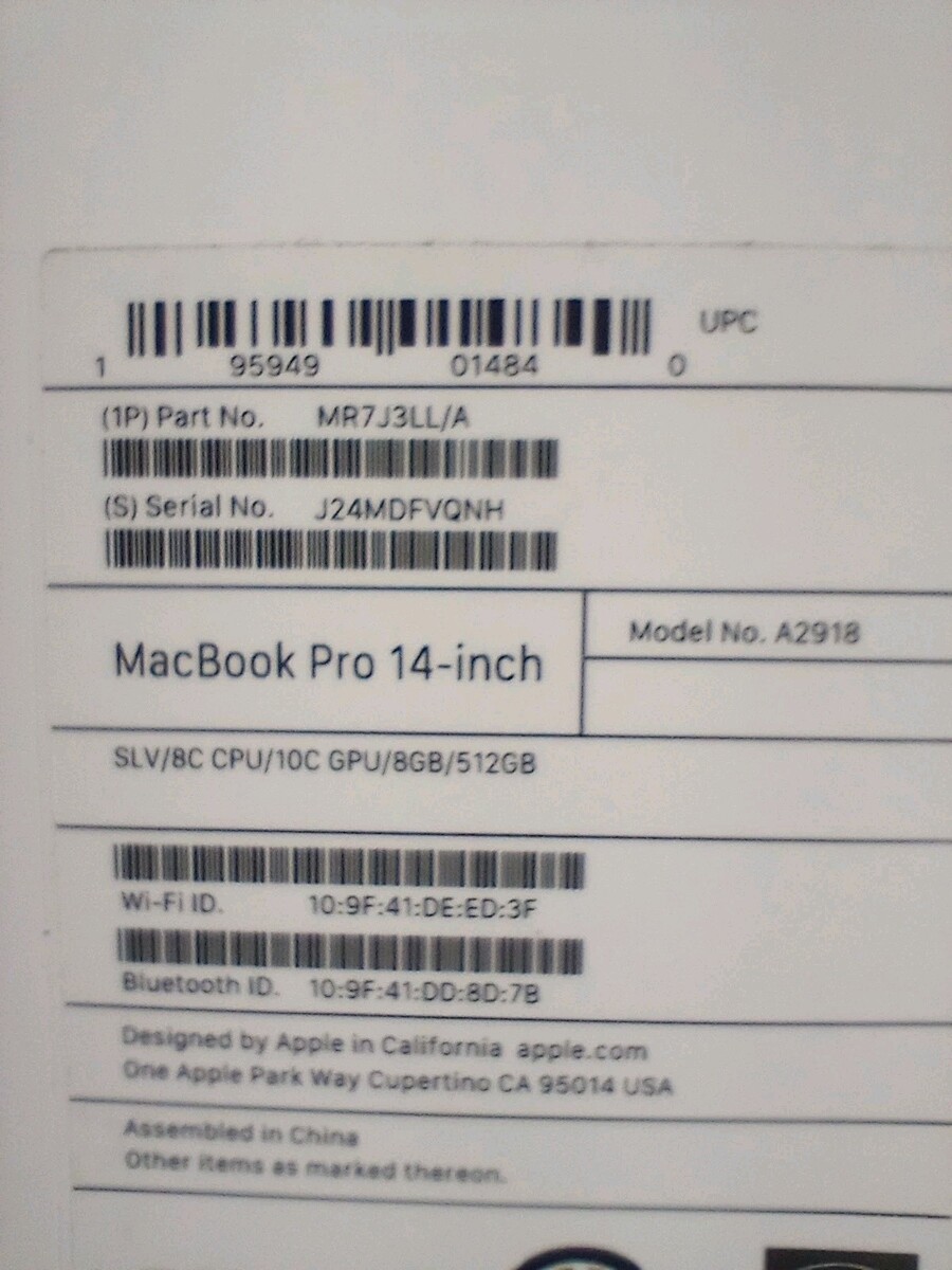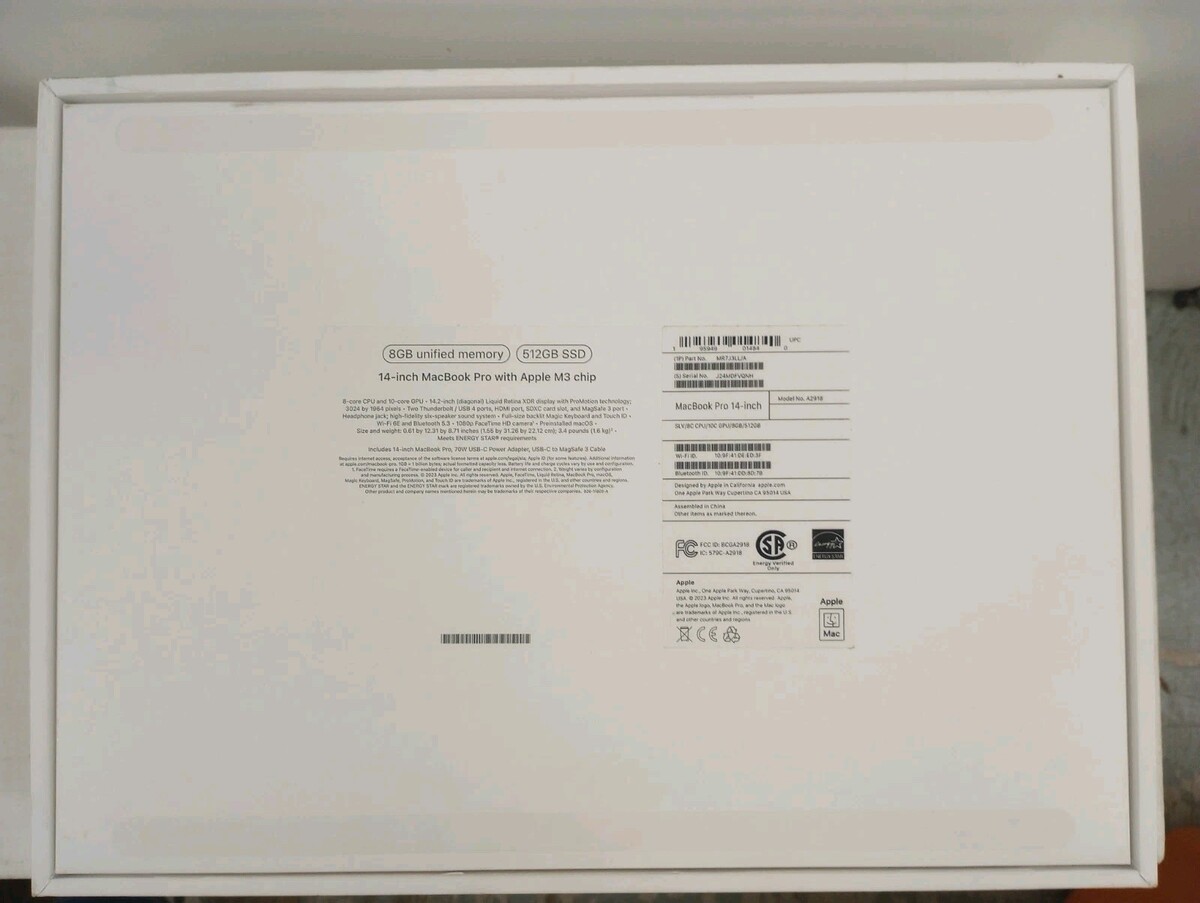 Apple Laptop BOX ONLY MacBook Pro 14-inch, Black, M3 Chip, 8GB, 512 GB SSD A2918