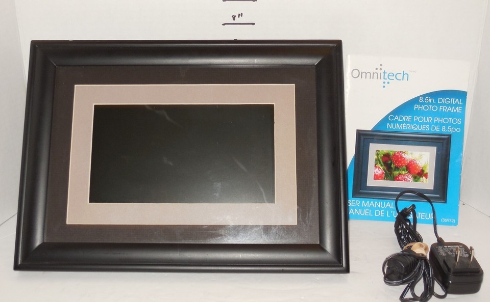 For Sale is a rare and hard to find Omnitech 8.5 in Digital Photo Frame black wood with black/beige Double Matte insert. Its In good USED condition as can be seen from the pictures provided. Please ask Any and All Questions prior to purchasing. Fast Same or Next day shipping with Free Delivery Confirmation within the U.S. Payment Due within 7 days of purchase (if you need more time please let us know In advance) we love to combine shipping is always a Yes and Most of the time Additional Items Ship for free. SKU4MS