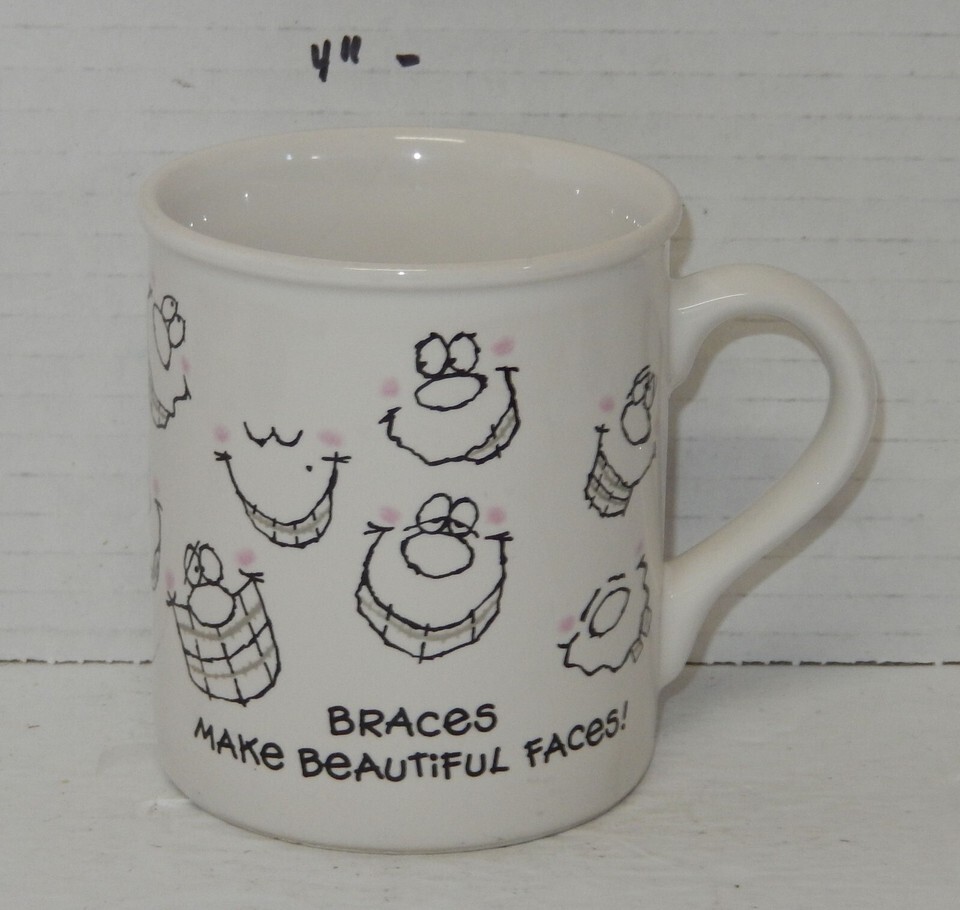 For Sale is a rare and hard to find 1985 Hallmark "Flash a Silver Smile" "Braces Make Beautiful Faces" Coffee Mug Cup Ceramic. its In good USED Condition as pictured. Please ask Any and All Questions prior to purchasing. Fast Same or Next day shipping with Free Delivery Confirmation within the U.S. Payment Due within 7 days of purchase (if you need more time please let us know In advance) we love to combine shipping is always a Yes and Most of the time Additional Items Ship for free. SKU4MS