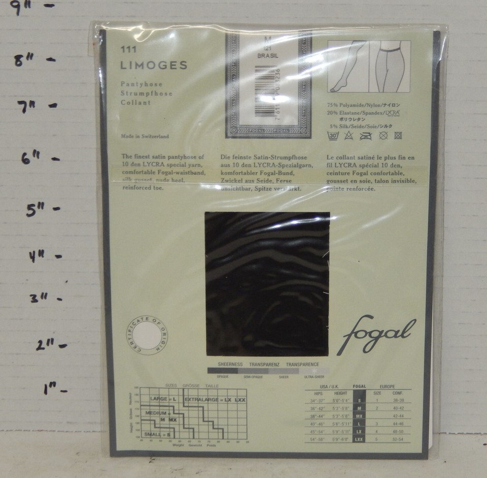 For Sale is a rare and hard to find Fogal Women's Pantyhose Size M Limoges 111 121 BRASIL 304. its In good Condition as pictured. Please ask Any and All Questions prior to purchasing. Fast Same or Next day shipping with Free Delivery Confirmation within the U.S. Payment Due within 7 days of purchase (if you need more time please let us know In advance) we love to combine shipping is always a Yes and Most of the time Additional Items Ship for free.