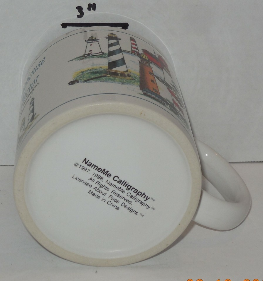For Sale is a rare and hard to find Light House Coffee Mug Cup Ceramic by NameMe Calligraphy. its In good USED Condition as pictured. Please ask Any and All Questions prior to purchasing. Fast Same or Next day shipping with Free Delivery Confirmation within the U.S. Payment Due within 7 days of purchase (if you need more time please let us know In advance) we love to combine shipping is always a Yes and Most of the time Additional Items Ship for free. SKU4MS