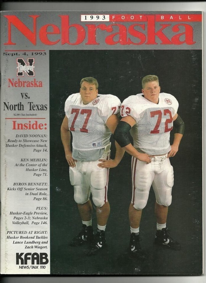 1993 NCAA Football Program North Texas @ Nebraska Sept 4th