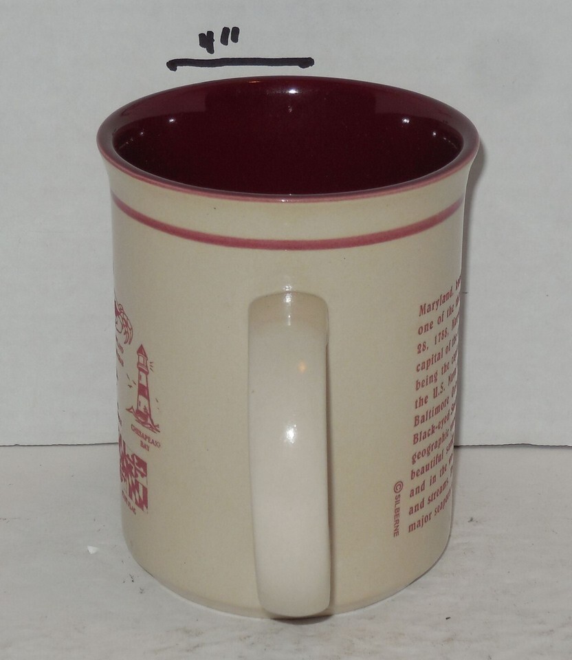For Sale is a rare and hard to find Vintage SILBERNE MARYLAND Coffee Mug Cup Ceramic. its In good USED Condition as pictured. Please ask Any and All Questions prior to purchasing. Fast Same or Next day shipping with Free Delivery Confirmation within the U.S. Payment Due within 7 days of purchase (if you need more time please let us know In advance) we love to combine shipping is always a Yes and Most of the time Additional Items Ship for free. SKU4MS