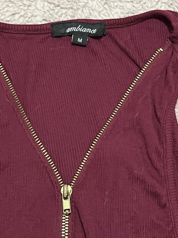 Ambiance Shirt Women’s Medium Zip Up Maroon Tank Top Spring And Summer
