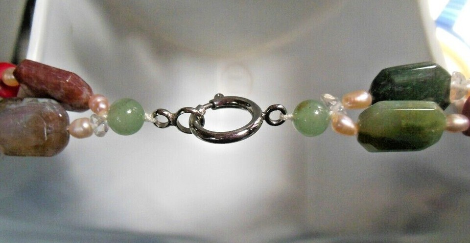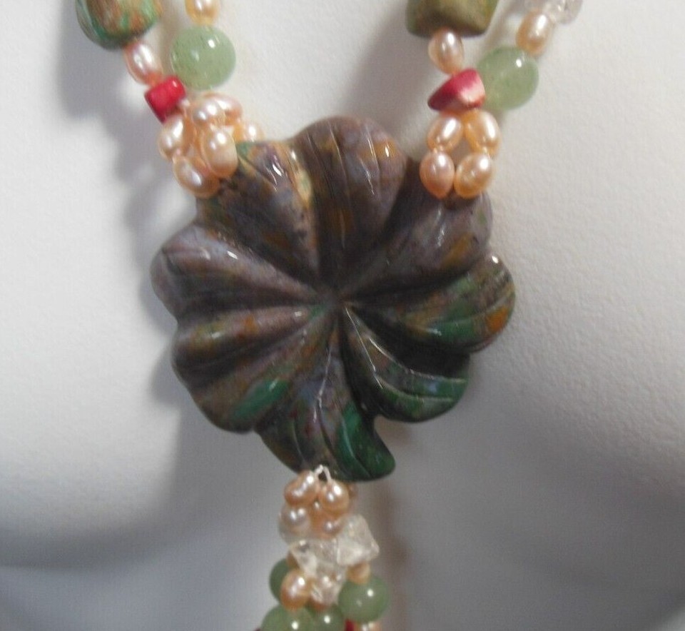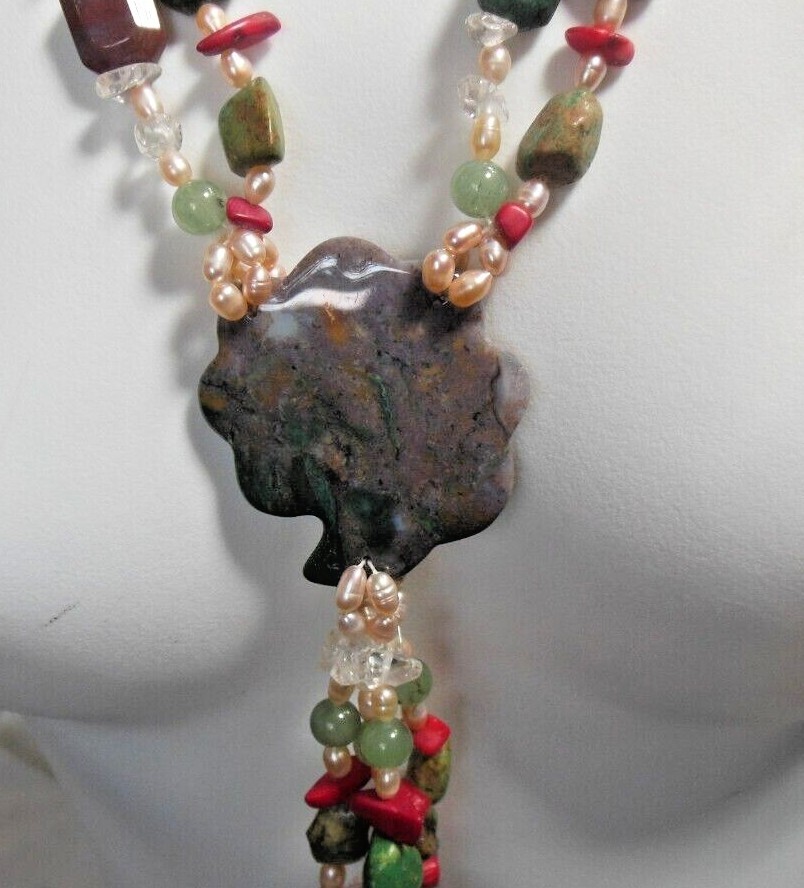 Vintage Massive Multi-color Gemstone Pendant Necklace 22"