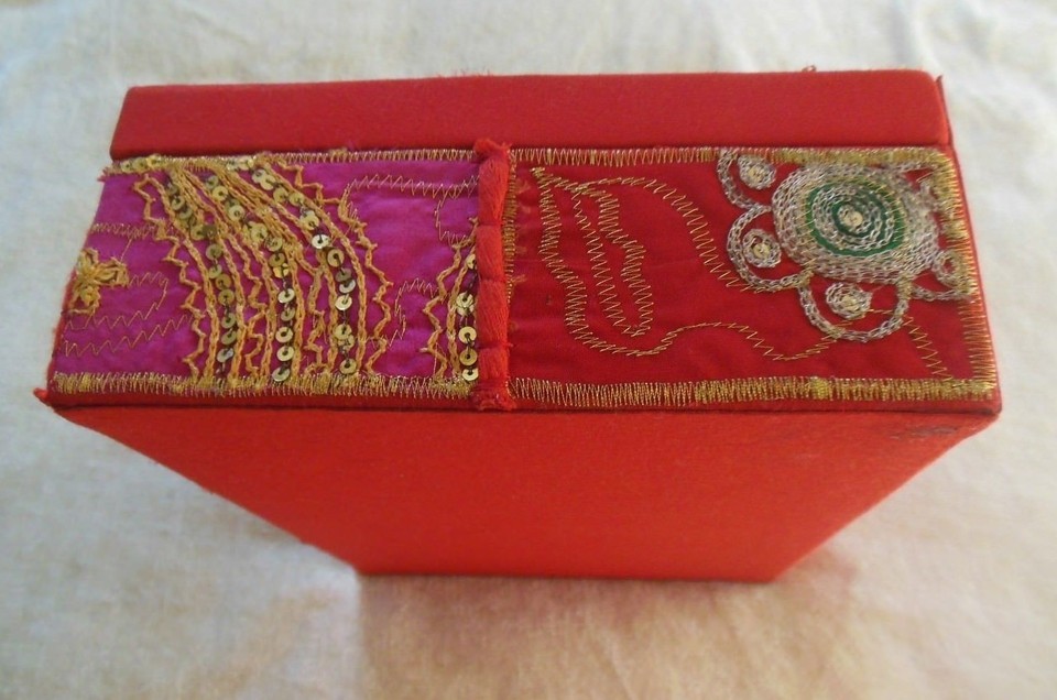 This Lovely colorful, decorative hand embroidered box was made in India by skilled Artisans.