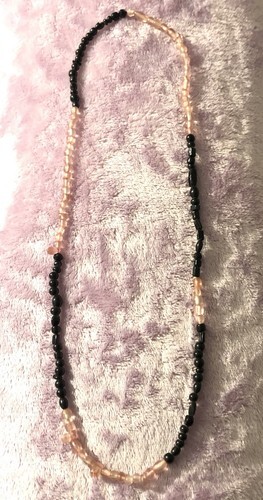 Vintage Green Cream Colored Glass Bead Necklace W/Small Gold Tone Spacers