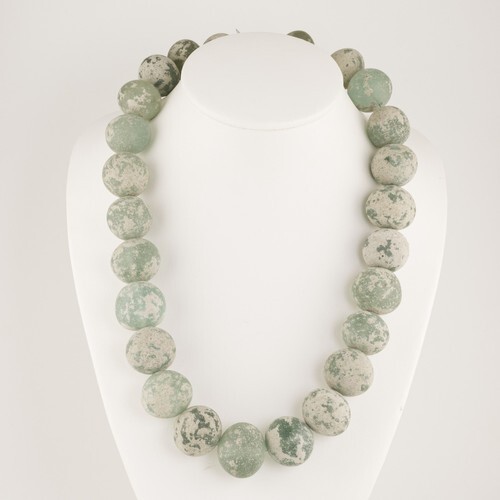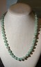 Vintage Green & Cream Colored Glass Bead Necklace W/Small Gold Tone Spacers