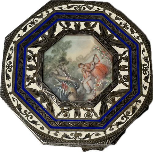 Vintage Silver-tone Murano Millefiori Glass 2-Sided Mirrored Compact