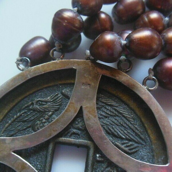 Pearls with an Asian Coin Clasp marked 925 on the back. The clasp has a safety