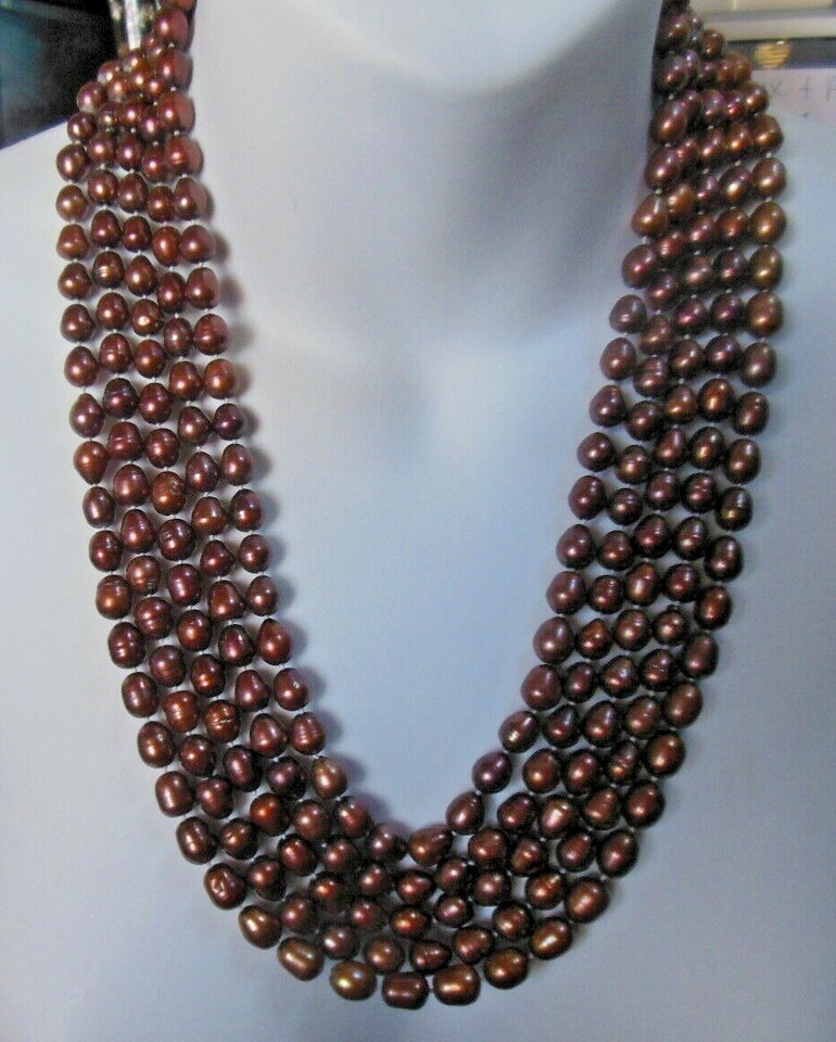 5 Strand Brown/Bronze Knotted Pearl Necklace and similar items
