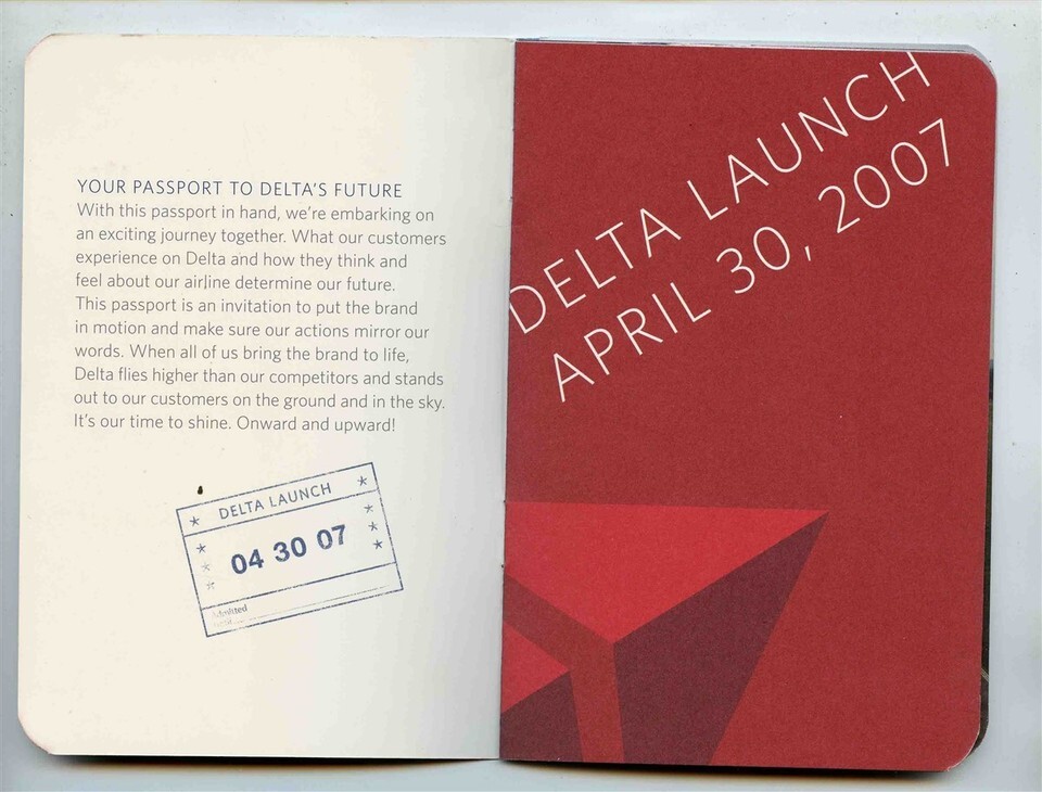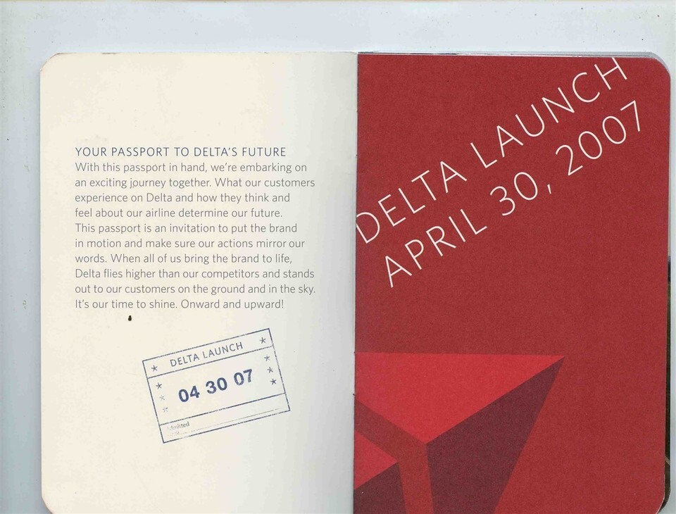 A well illustrated 16 page booklet with fold out. A Delta Brand Booklet , Delta Launch April 30, 2007. Delta Air Lines Welcome to The New Delta Booklet
