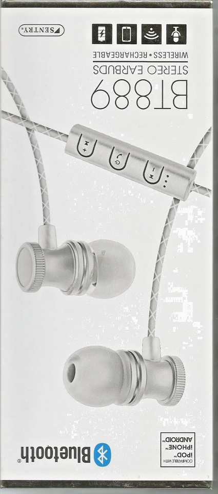 Sentry BT889 Bluetooth Wireless Stereo Buds with In line mic White New