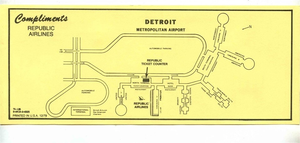 Republic Airlines Airport Maps Detroit Metropolitan O'Hare International 1979