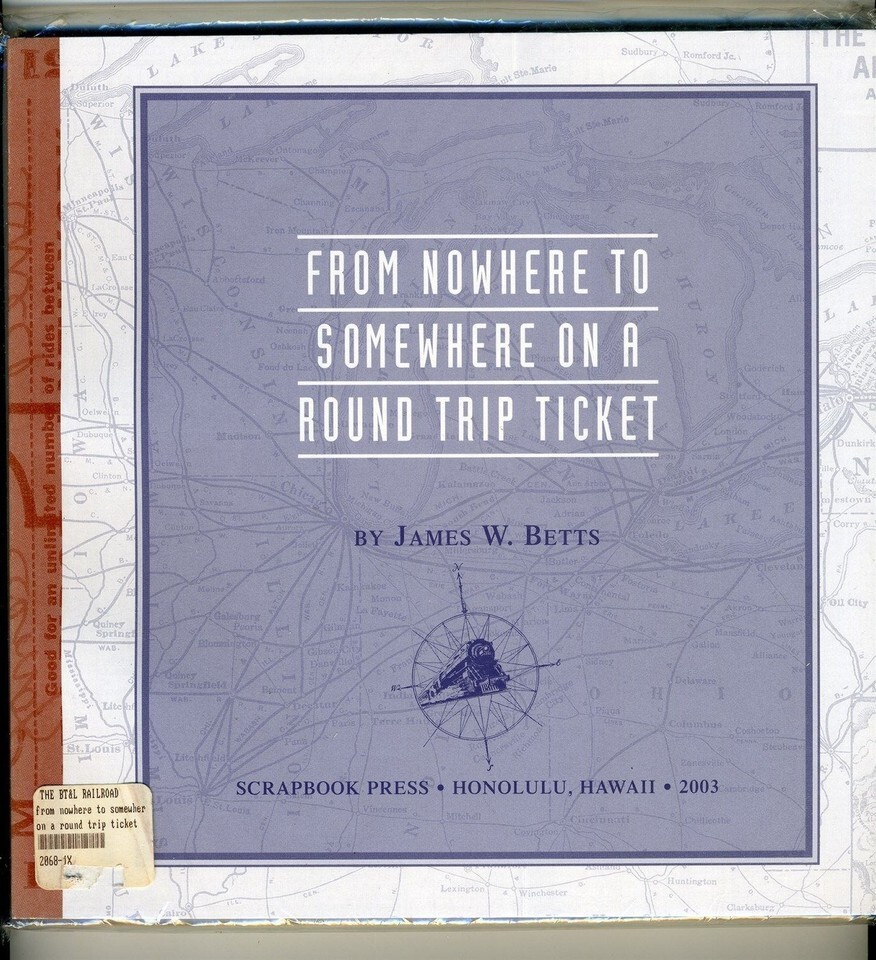 From Nowhere to Somewhere on a Round Trip Ticket, James Betts, Scrapbook Press, Honolulu, 2003. A new soft cover, sealed in plastic. 109 pages. Railroads, Photographs, Funny Stories and more.