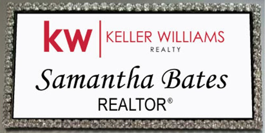 KELLER WILLIAMS REALTY BLING CRYSTAL PERSONALIZED NAME BADGE W/ PIN FASTENER