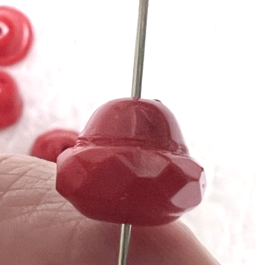 4 Cherry Red Bell Shaped Glass beads 1/4 L 3/8 Fat Bottom Faceted Rim