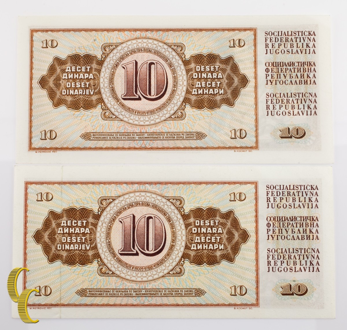 (2) 1968 Yugoslavia 10 notas de dinar